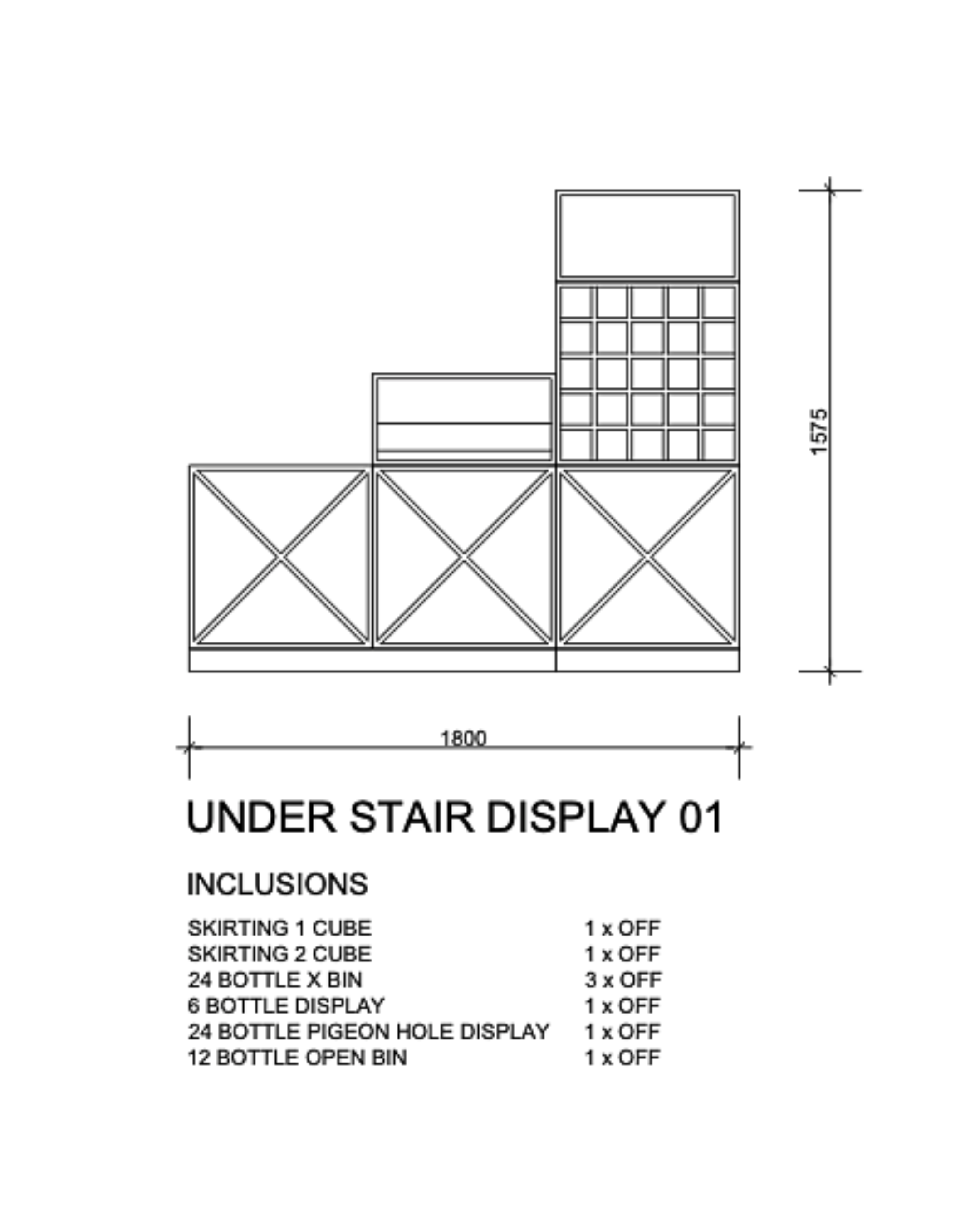 • Mixed Storage Options: Includes open bins, cube skirtings, pigeon holes, and cross-cellars for a variety of wine and bottle sizes.