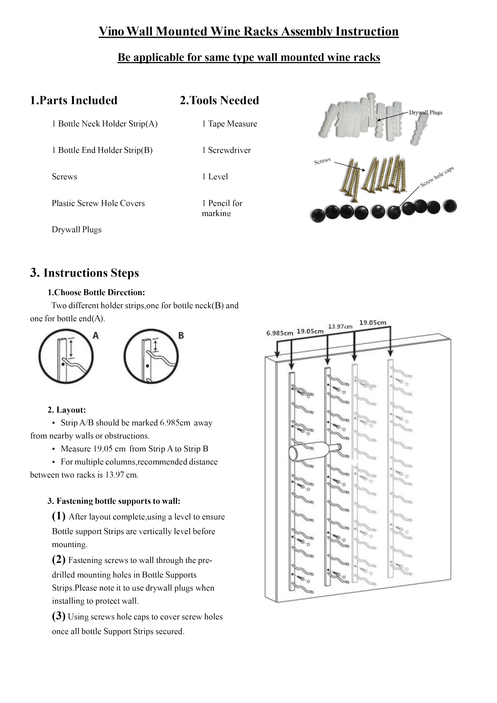 Manual of 12X1 12X2 12X3 120CM Wall Wine Racks
